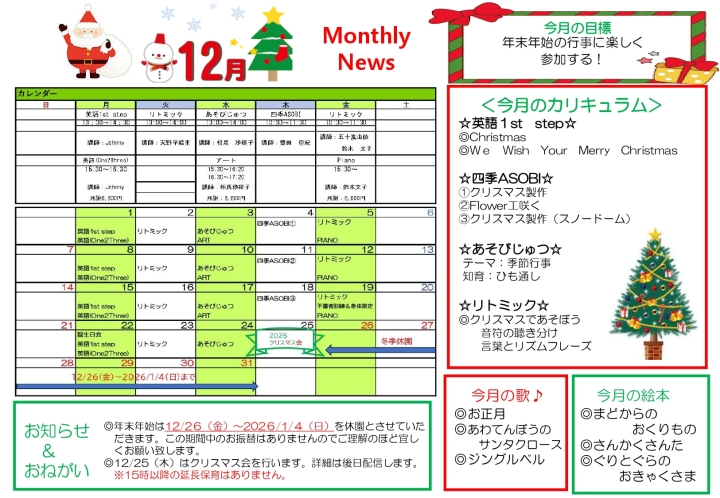 年末年始のお知らせ