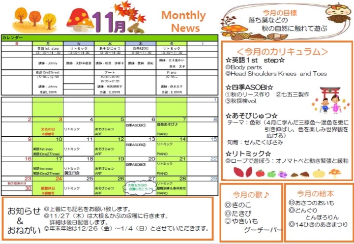 Monthlyニュース11月号のお知らせ